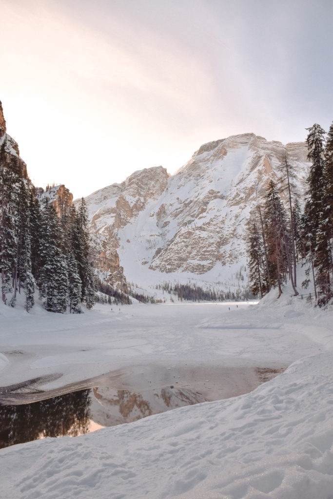L’indomani mi svegliai di primo mattino, pronta a fare colazione e per la nostra seconda meta improvvisata: fatto il check out, era il momento di raggiungere il lago di Braies! L’avevo già visto anni prima, ma fu durante la stagione autunnale. Non lo avevo mai visto con la neve: tutta quella neve e quel ghiaccio avevano reso il lago se è possibile più bello.
