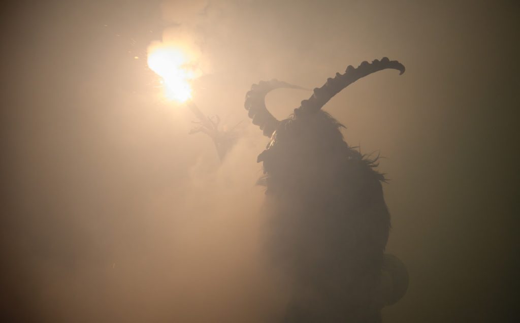 Col calar del sole, in paese grandi e piccini erano pronti a vedere emozionati la parata che ogni anno riempie ogni angolo della città di figure mostruose, con maschere terrificanti dallo sguardo feroce e grottesco sovrastate da grandi corna, vestite di pesanti costumi in pelliccia di caprone e munite di torce infuocate, fruste con cui castigare le vittime e grossi campanacci che ne annunciano l’arrivo fin da molto lontano. La sfilata fu volutamente rumorosa: i demoni terrorizzano il pubblico, fra le loro spaventose urla e il frastuono di catene e bastoni, fuochi artificiali e fumo che usciva da sotto le pellicce e dai loro cesti in vimini, vagano alla ricerca di adulti e bambini cattivi da punire, come vuole la tradizione.